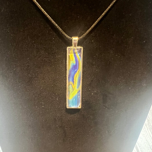 Handmade Acrylic Paint Skin Necklace - 24" Pendant Necklace with Unique Fluid Art Design